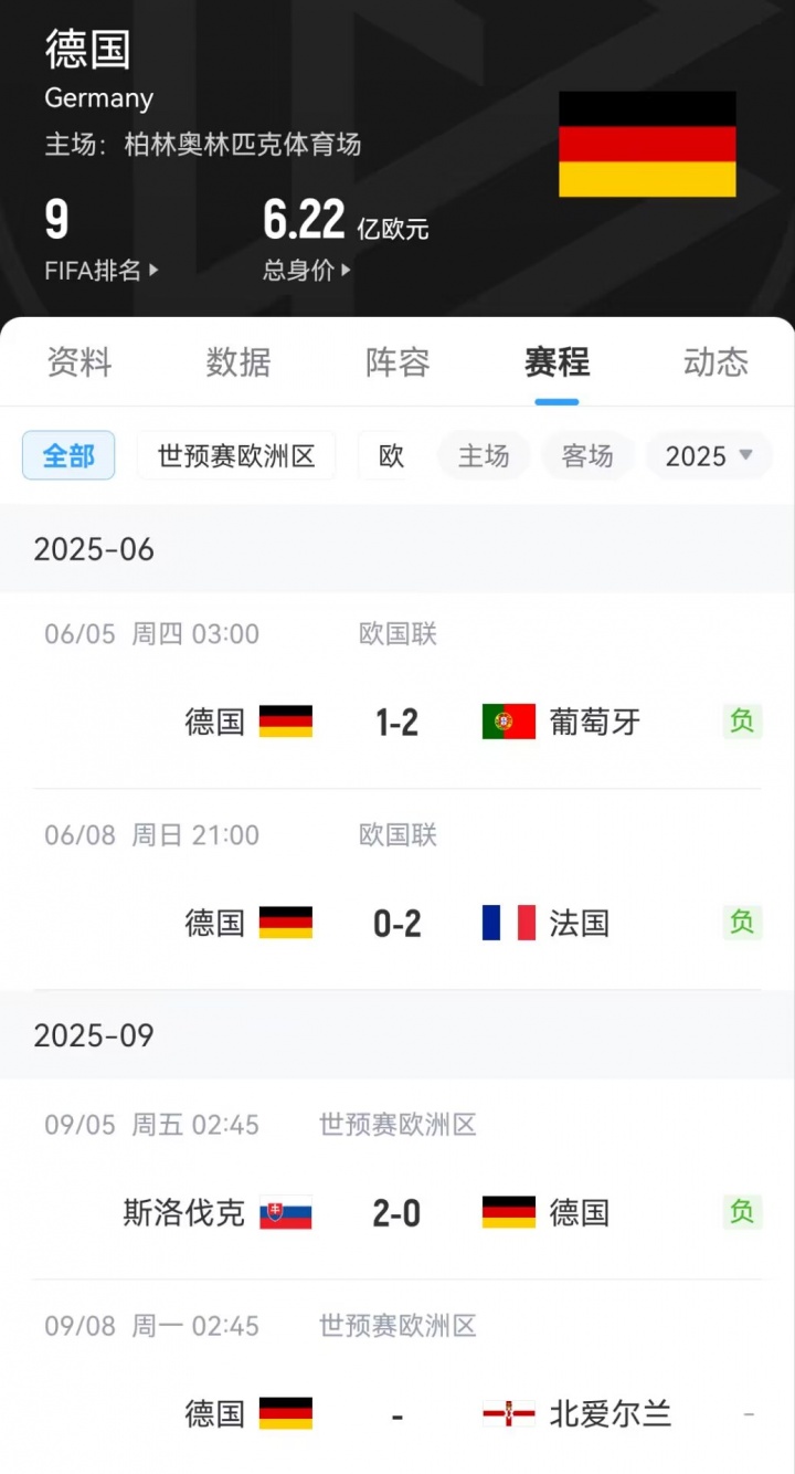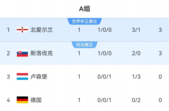 在世界杯预选赛欧洲区小组赛首轮中,德国队0-2不敌斯洛伐克遭遇失利,下一场比赛将面对北爱尔兰队。