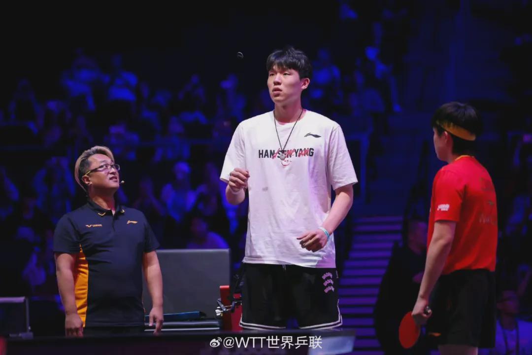 7月11日,杨瀚森惊喜现身WTT美国大满贯赛场。在男单1/8决赛王楚钦对阵李尚洙的比赛中,他作为特邀嘉宾为王楚钦挑边。站在王楚钦身旁,身高差使得王楚钦宛如“小手办”,这一画面在社交媒体上迅速传播。杨瀚森难掩激动地表示,国乒一直以来战绩傲人,能参与这次挑边是无比荣耀的时刻。他还透露自己小时候参加过一个月乒乓球训练营,虽然笑称自己是“菜鸟”,但这次跨界互动,成功实现了篮球与乒乓球两大项目的梦幻联动,让不同项目的粉丝都为之兴奋。