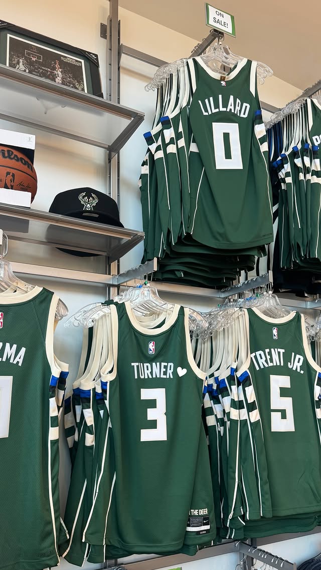 从Aysia Janelle晒出的照片可以看到,特纳的3号球衣已经上架,而利拉德的0号球衣在促销。